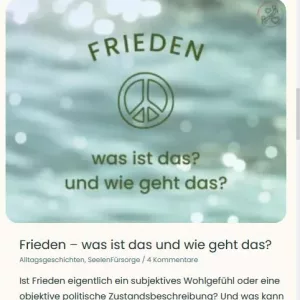 => Der Beitrag könnte dir gefallen, wenn du den thematischen Bogen mal sehr weit spannen möchtest und die Wirkung des Friedens auf dein Leben umfassend betrachten magst.