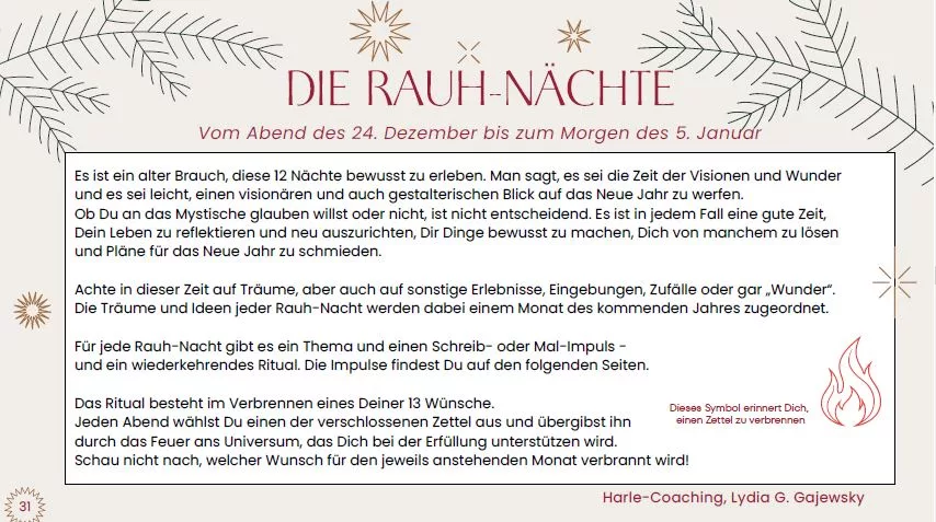 – Wenn Du die Rauh-Nächte mit Räuchern, Tarot-Karten, Traumdeutung und Meditationen begehen möchtest